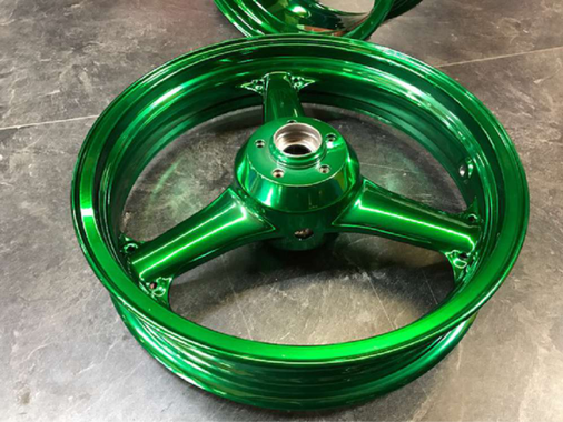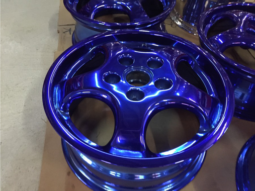Wenn es richtig leuchten oder glänzen soll, stößt der Glanzgrad einer herkömmlichen Lackierung an seine Grenzen. Candy Pulverbeschichten erzielt unter diesem Aspekt ein sehr viel besseres Ergebnis. Hochglanzverdichten der Felge und anschießendes Lasurpulvern in fast allen möglichen Glanzfarben.